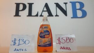 Detergente (marca Gigante) actualmente sale $495,00. El año pasado su valor fue de $99,00 (misma marca), su variación inflacionaria interanual fue del 400%.