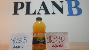 Jugo de naranja (marca Cepita del Valle) de 350cc tiene un valor de $390. En tanto que hace un año su precio era $153. Su incremento fue de 155% interanual.