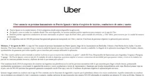 El comunicado de Uber simplemente aclara que la aplicación ya está disponible para aquellos choferes que quieran trabajar para la aplicación.