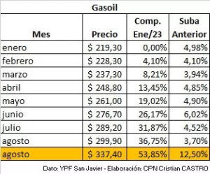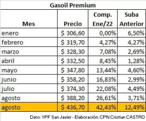 El gasoil en 337 pesos y el gasoil premium $436,70.