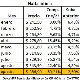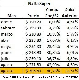 Tras el aumento de 12,5 por ciento en los precios de las naftas que aplicó YPF, y que será replicado por las otras petroleras, así quedaron los precios de los combustibles en el interior de Misiones (en Posadas puede variar un poco).