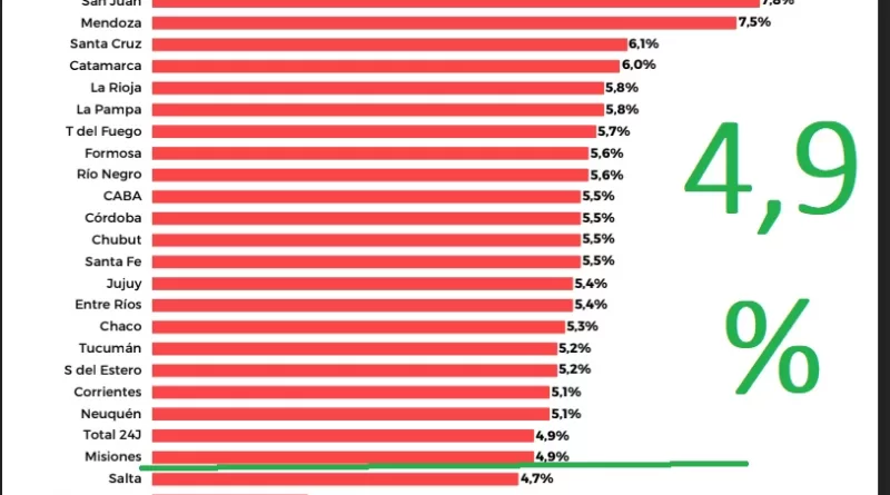 Misiones recibió giros por 43.715 millones de pesos con una suba en términos reales (descontando la inflación) de 4,9 por ciento interanual.