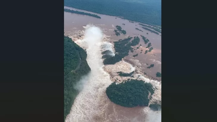 “Aguas arriba de las Cataratas, donde el caudal normal de los saltos es de 1.500 metros cúbicos de agua por segundo, se dieron registros de 13.000 metros cúbicos de agua por segundo y se prevé que llegue a los 19.000”, indicó el comunicado.