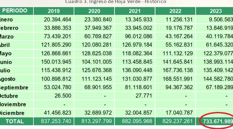 La caída de hoja verde en 2023 representa aproximadamente un 10 por ciento menos que el año pasado, cuando se cosecharon 812 millones de kilos para el mismo período.
