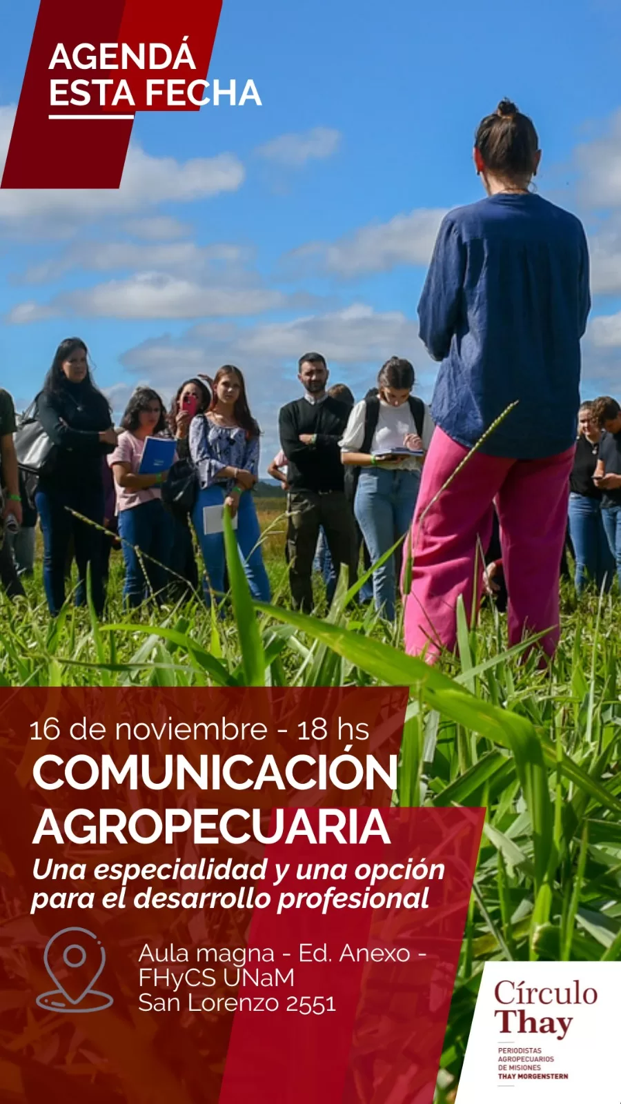 La licenciada Isabel Carrera, el magister Francisco Pascual y la técnica Eliana Benay compartirán su visión sobre la Comunicación Agropecuaria y las oportunidades que brinda el campo laboral a partir de la especialidad. “Hablaremos de periodismo, comunicación en las organizaciones y de extensión rural”, invitaron.