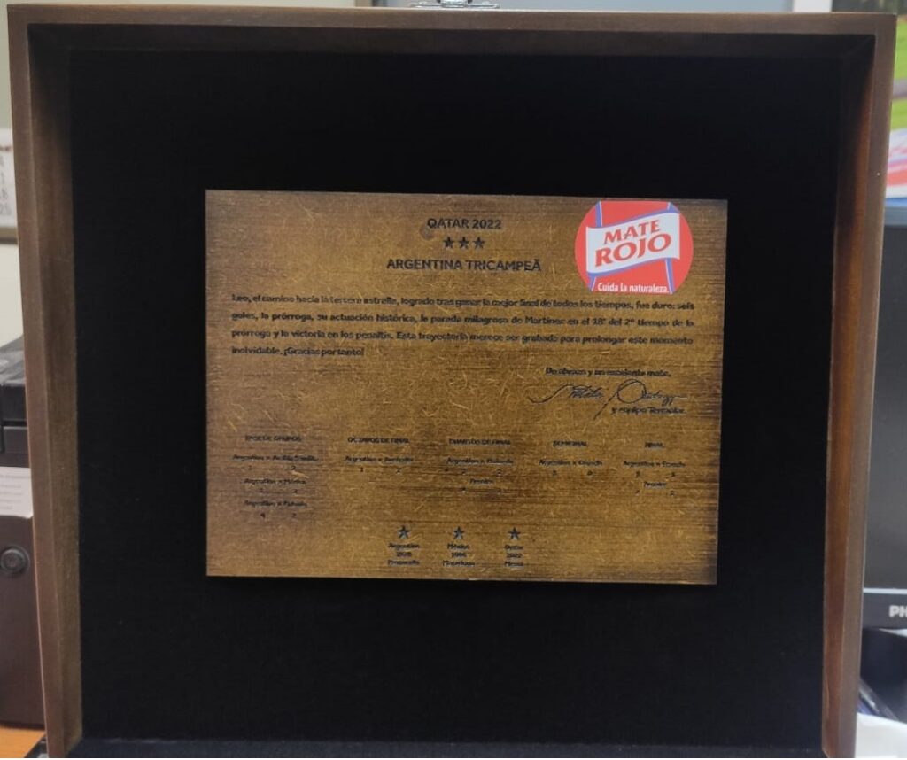 Pero no fue solo el número 11 de la Selección Argentina que recibió este regalo, ya que la yerbatera obereña le envió el mismo regalo nada más y nada menos que al mismísimo Lionel Messi, quien también recordó este primer aniversario como campeón del mundo.