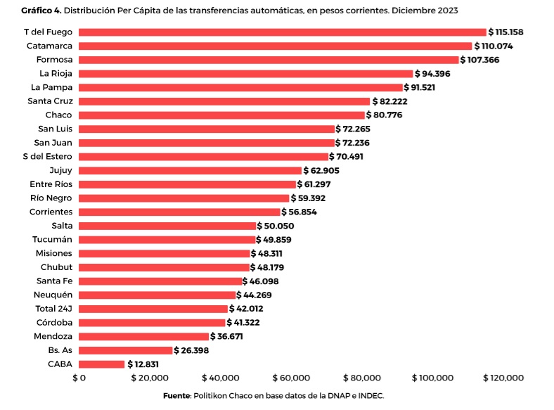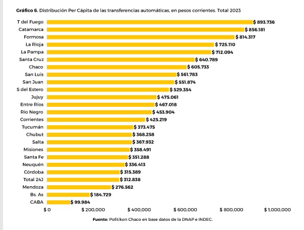 En línea con lo observado en los resultados para el mes de diciembre, Misiones cierra el 2023, recibiendo $358.491 por habitante.