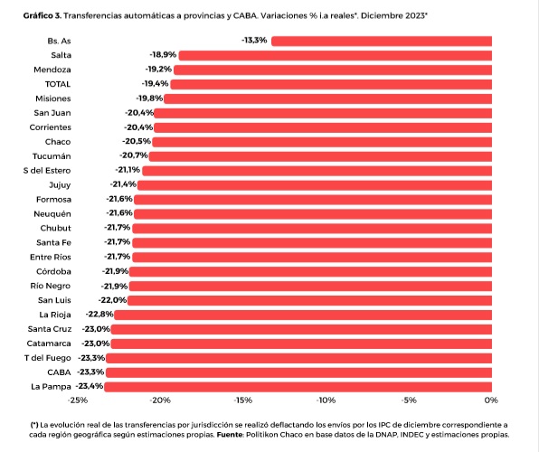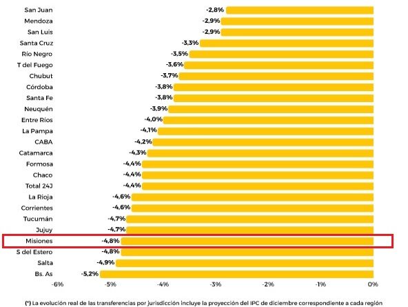 En diciembre se observa que las 24 jurisdicciones subnacionales cerraron el mes con bajas de doble dígito. En esta línea, Misiones tuvo un descenso moderado (-19,8%).
