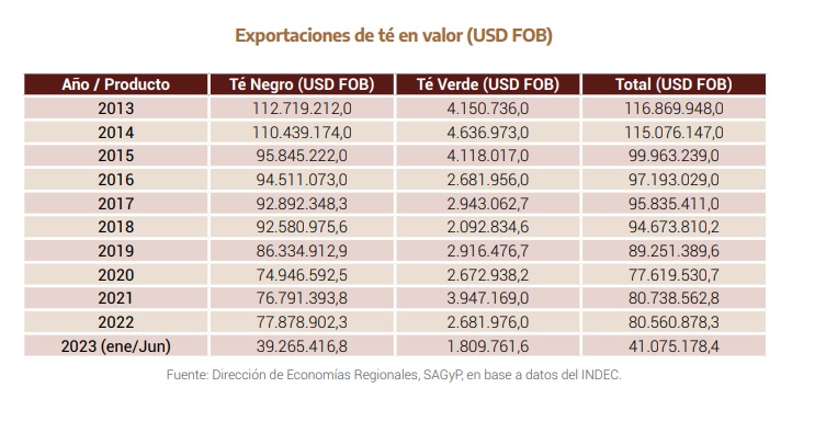 En 2013 se exportaron 77 millones de toneladas de té y nueve años después, se exportaron 72 millones. Las cifras de un negocio estancado o a la baja.