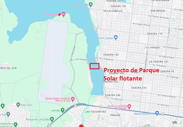El Gobierno a través de la Secretaría de Energía y Energía de Misiones SA (EMSA) quiere instalar un parque solar fotovoltaico flotante, de 30.000 metros cuadrados en el arroyo Mártires justo al lado del segundo puente. Tendrá una potencia de 3MW, algo más chico que el del Silicon Misiones que tiene 5MW.