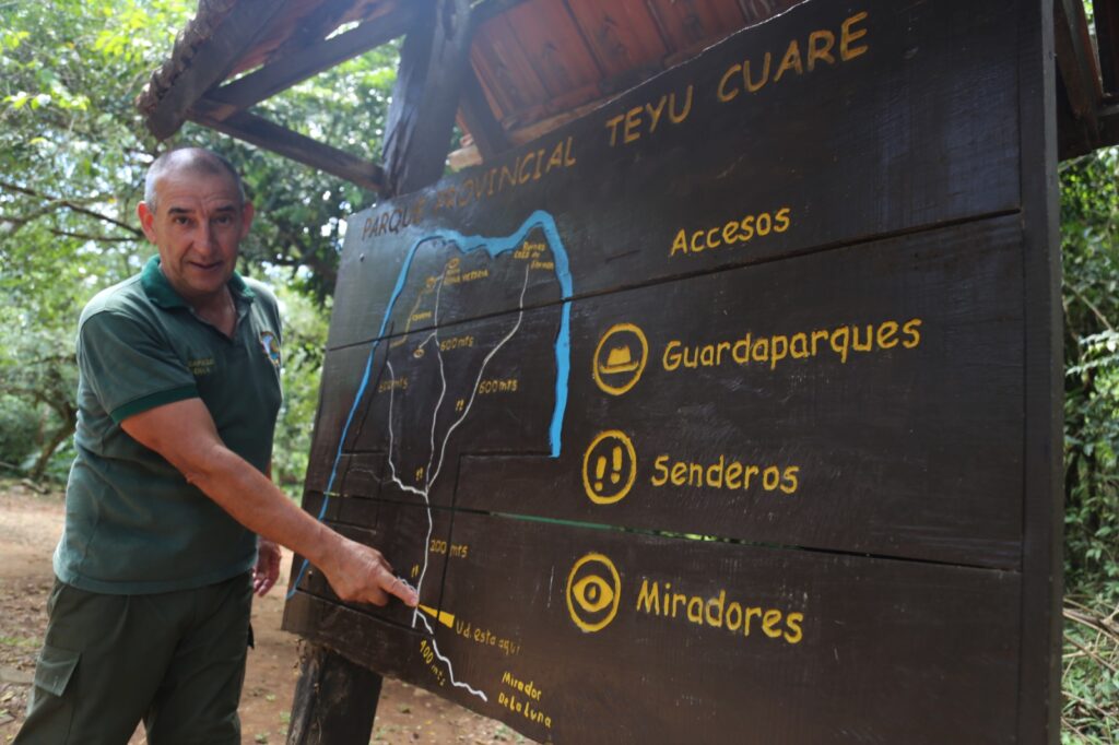 Por su parte, el ministro de Turismo, José María Arrúa, destacó las mejoras en el área turística del Teyú Cuaré, como la promoción de emprendimientos locales y la renovación de senderos y miradores. Agradeció el apoyo del Ministerio de Ecología para fomentar el turismo de bajo impacto y mejorar la oferta para turistas provinciales, nacionales e internacionales. “Aquí tenemos mucho turismo estudiantil, muchos chicos de distintas escuelas que vienen durante todo el año al parque; esto va a ayudar también a que la oferta sea mucho más segura y podamos brindarles muchos más servicios”, garantizó.