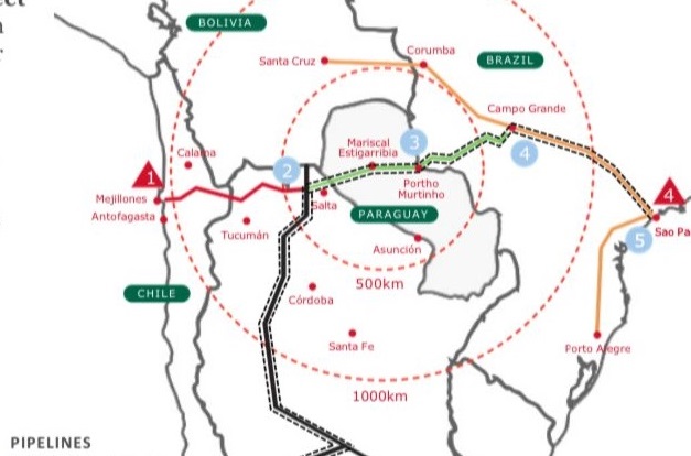 El trazado del gasoducto incluye 531 kilómetros en Paraguay, paralelos al corredor bioceánico.
