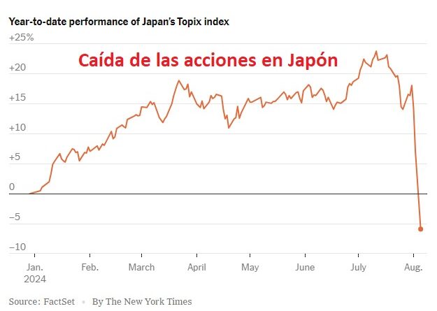 El epicentro de este lunes negro es la Bolsa de Japón, con una caída del índice Nikkei (el de las 225 acciones más importantes) de más de 12 por ciento, comparable al del llamado “lunes negro” en octubre de 1987, que fue una jornada que marcó el inicio de una crisis económica mundial.