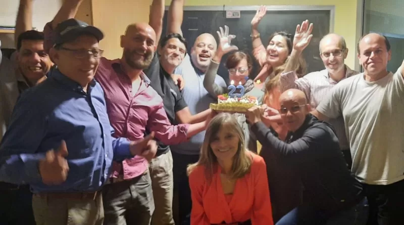 Una parte del equipo de Radio República soplando las velitas por el 23 cumpleaños, el jueves pasado.