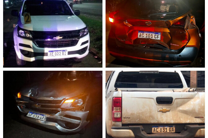 En las fotos se puede apreciar los distintos vehículos que fueron chocados por el legislador y la Nissan Kicks a la que impactó hace unos días, en Mártires.