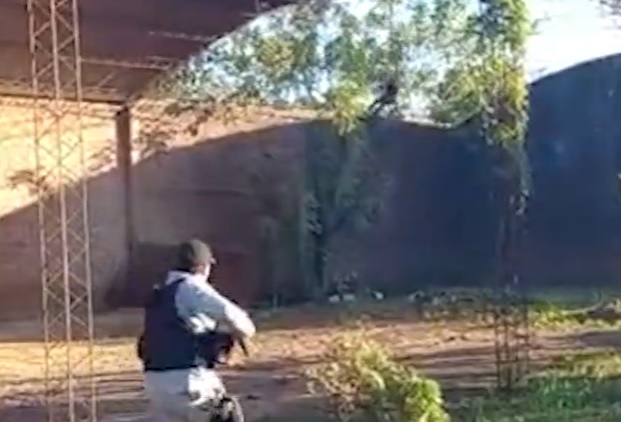 El video publicado por MisionesOnline muestra una impactante escena en la que un efectivo de la Prefectura le apunta y dispara (supuestamente balas de goma) al conductor de la camioneta que, habiendo abandonado el vehículo, intentaba escapar por los techos.