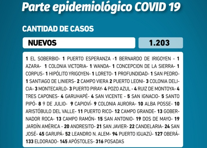Reportaron 1.203 nuevos casos, récord.